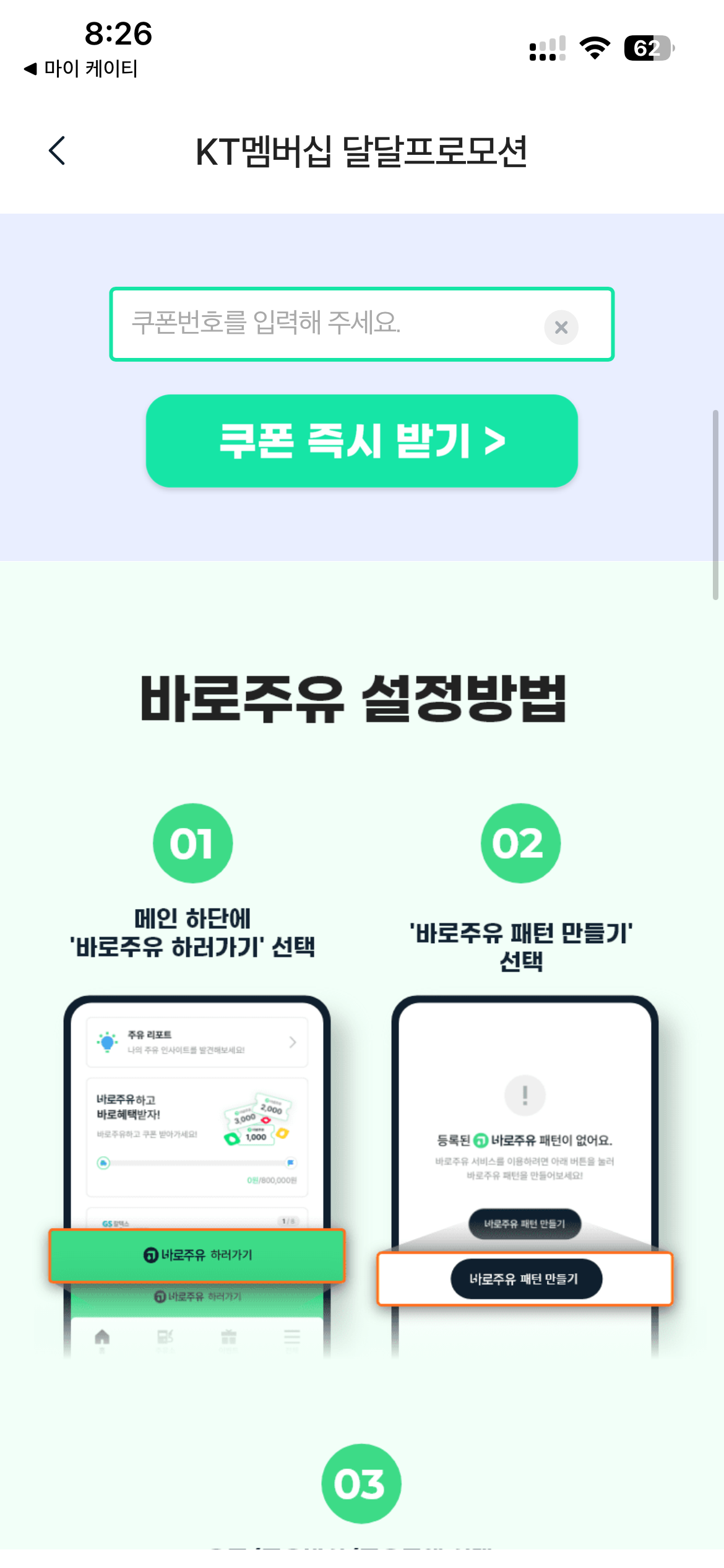 아래로 더 내리면 '쿠폰번호를 입력해 주세요' 라는 화면이 나오는데