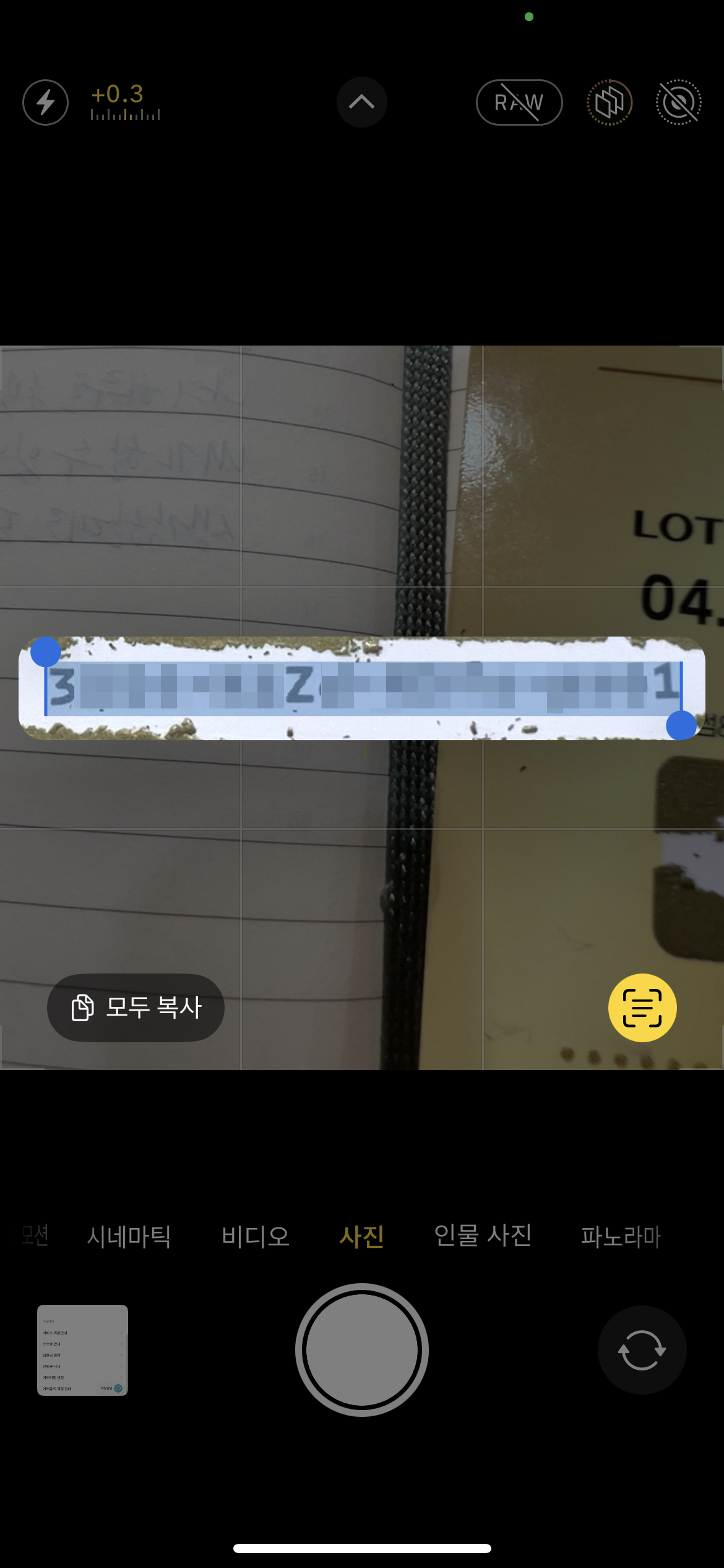아이폰의 경우 카메라로 화면을 비추면 텍스트를 자동으로 인식하고 복사를 할 수 있다.