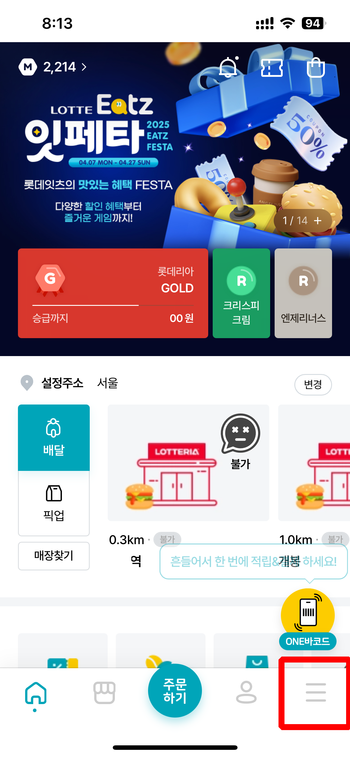 롯데잇츠앱에서는 하루에 한장씩만 등록이 가능하다!