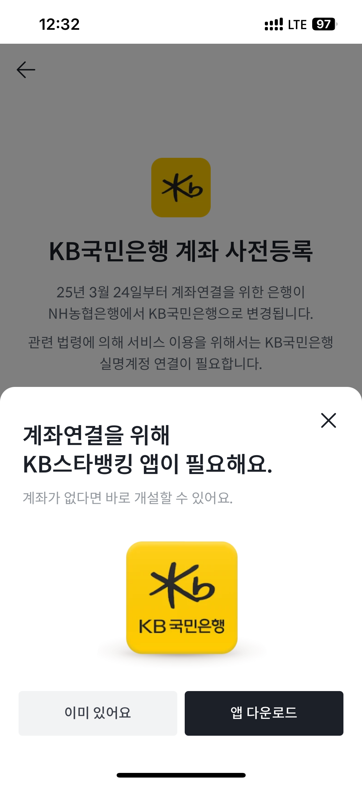 신청을 한 뒤에 국민은행 계좌를 등록해도 된다.