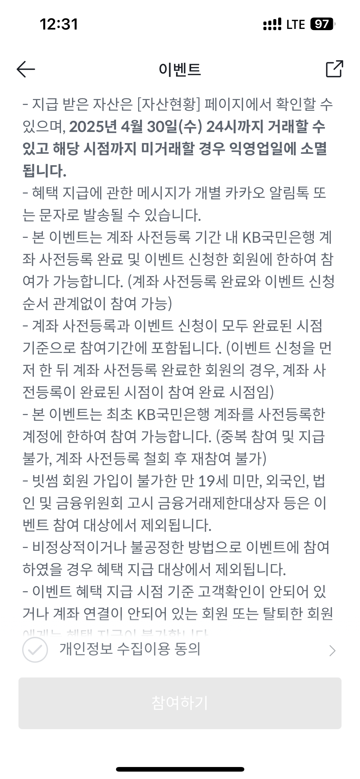 - 2025년 1월 20일(월)~ 22일(수) 사이에 KB국민은행 계좌 사전 등록한 회원도 참여 가능