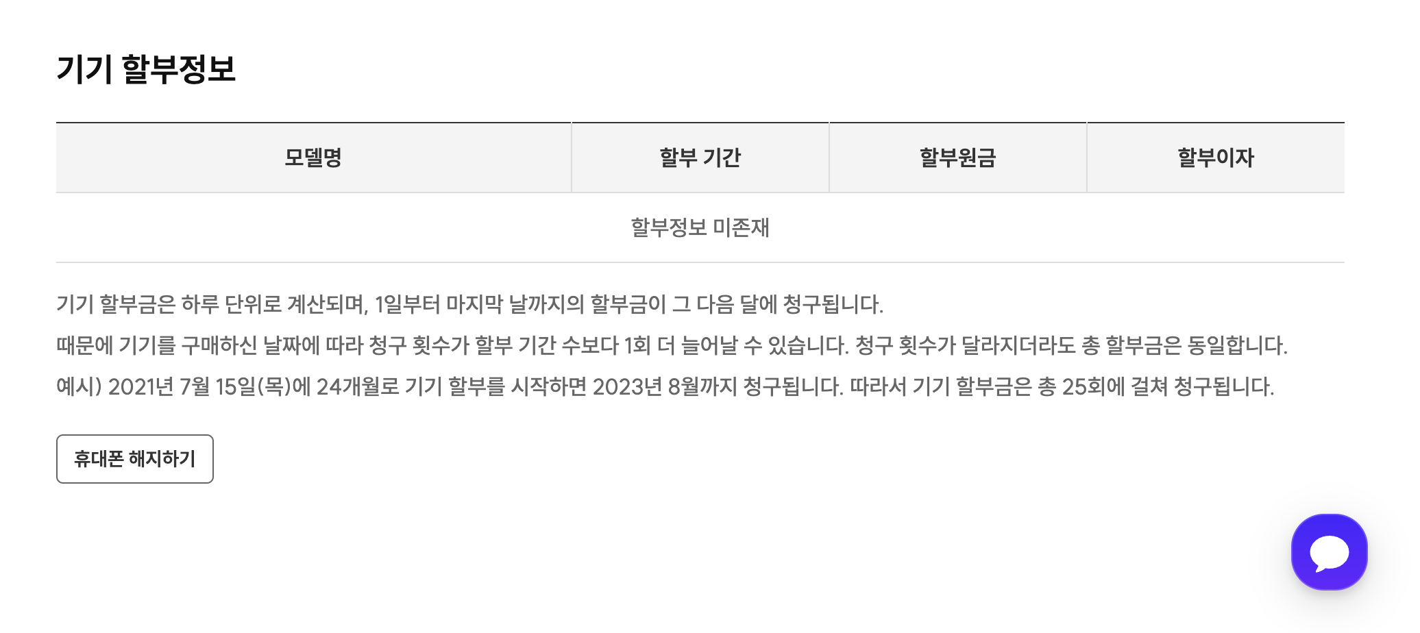 - 홈페이지 우측 하단에 채팅 상담 아이콘이 있다.