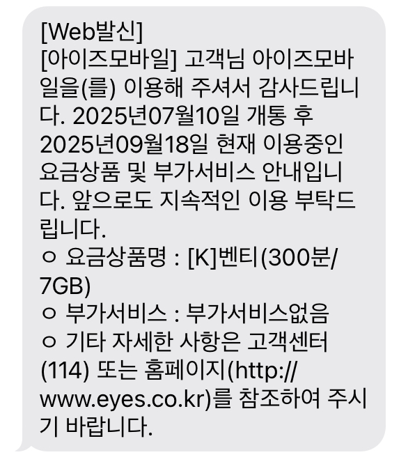 문자 내용에 '부가서비스: 부가서비스없음'으로 되어 있기에 이걸 보냈더니