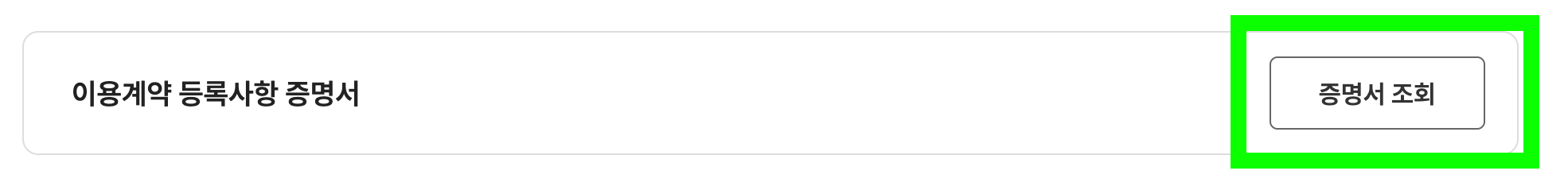 가입정보 페이지로 이동하면 '이용계약 등록사항 증명서' 부분이 보인다.