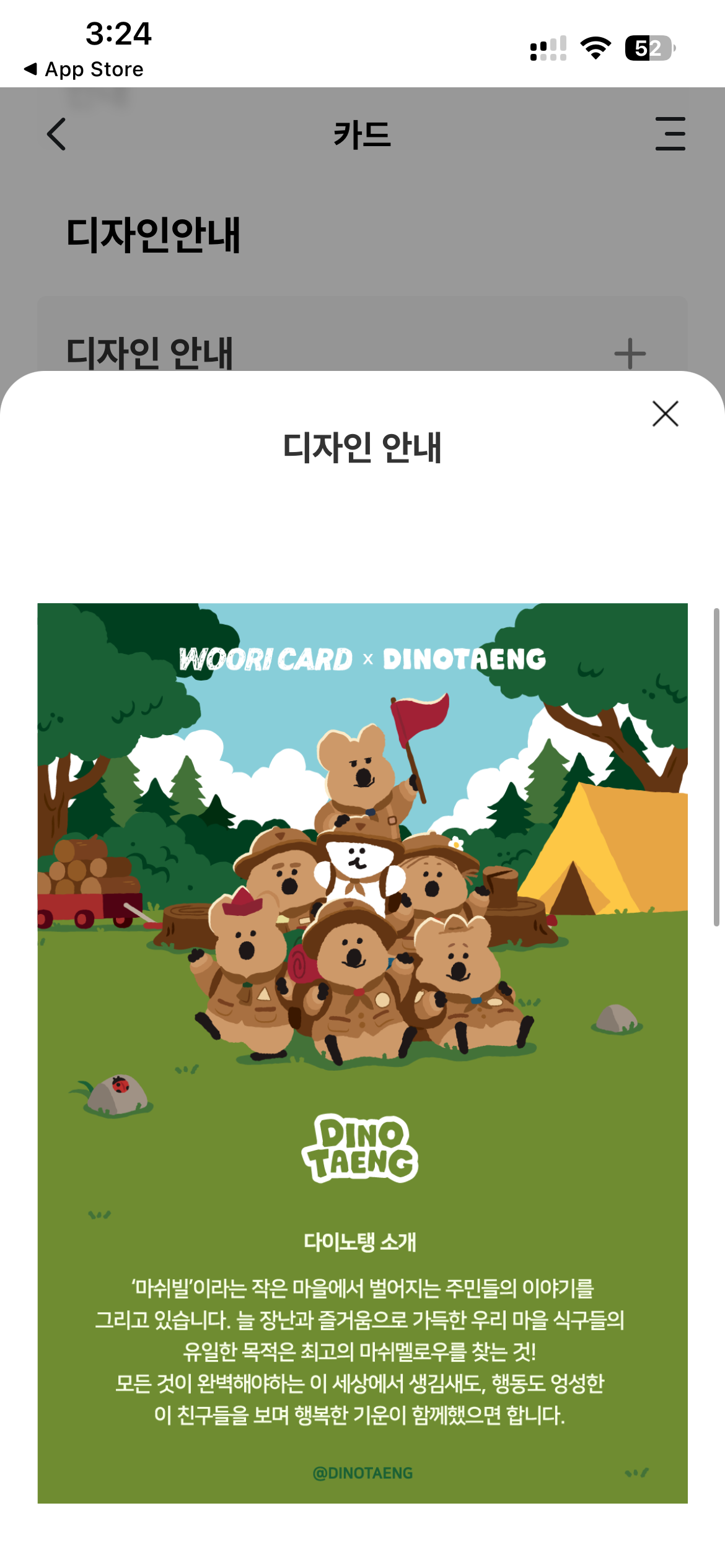 다이노탱 카드만 혜택보다 '디자인안내'가 더 크게 나와있길래