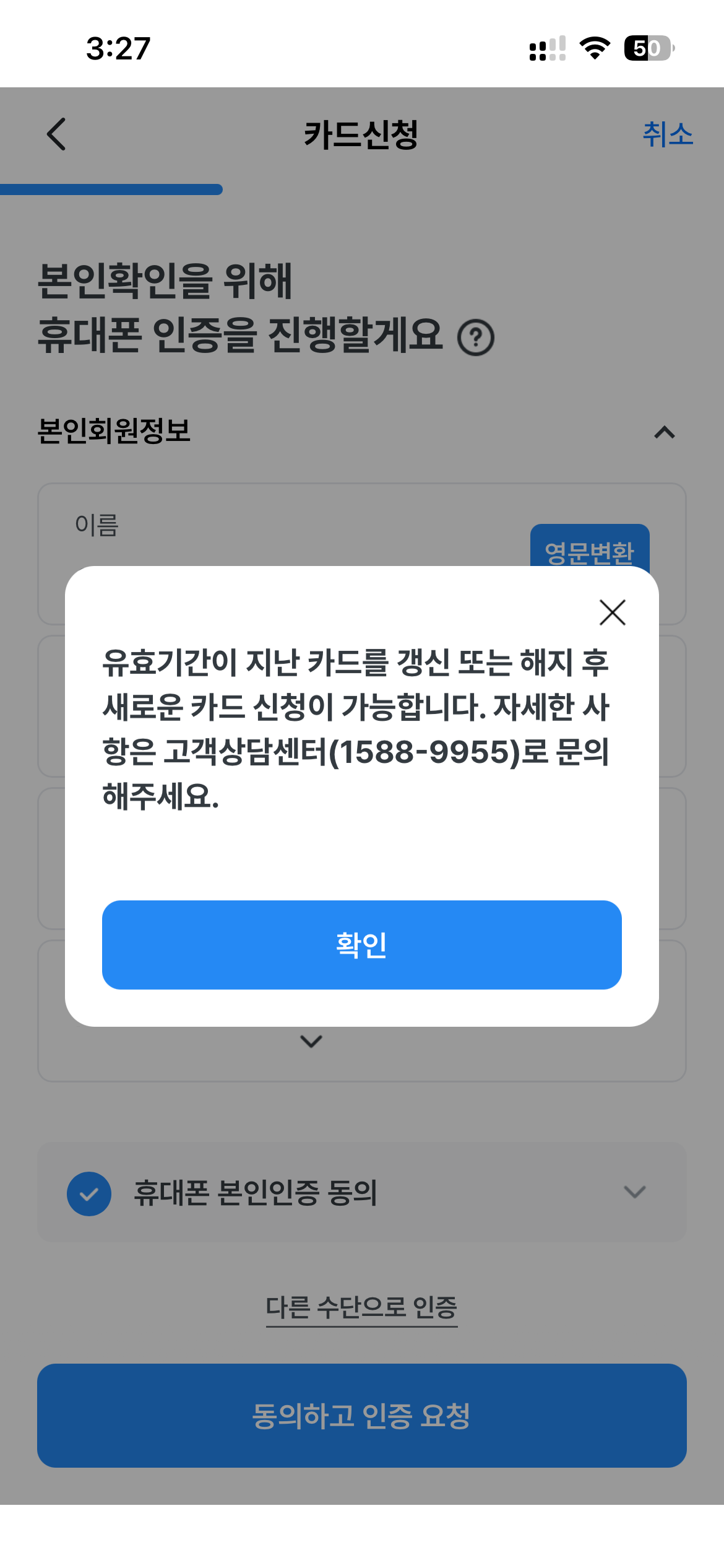 카드 신규발행은 안된다고 미리 공지를 해줬으면 좋지 않았을까?