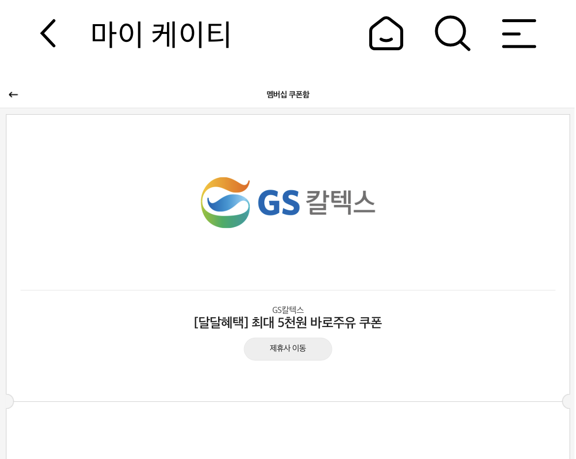 여러가지 혜택 중 GS칼텍스 바로 주유 쿠폰 최대 5천원 제공 쿠폰으로 들어가면 된다.